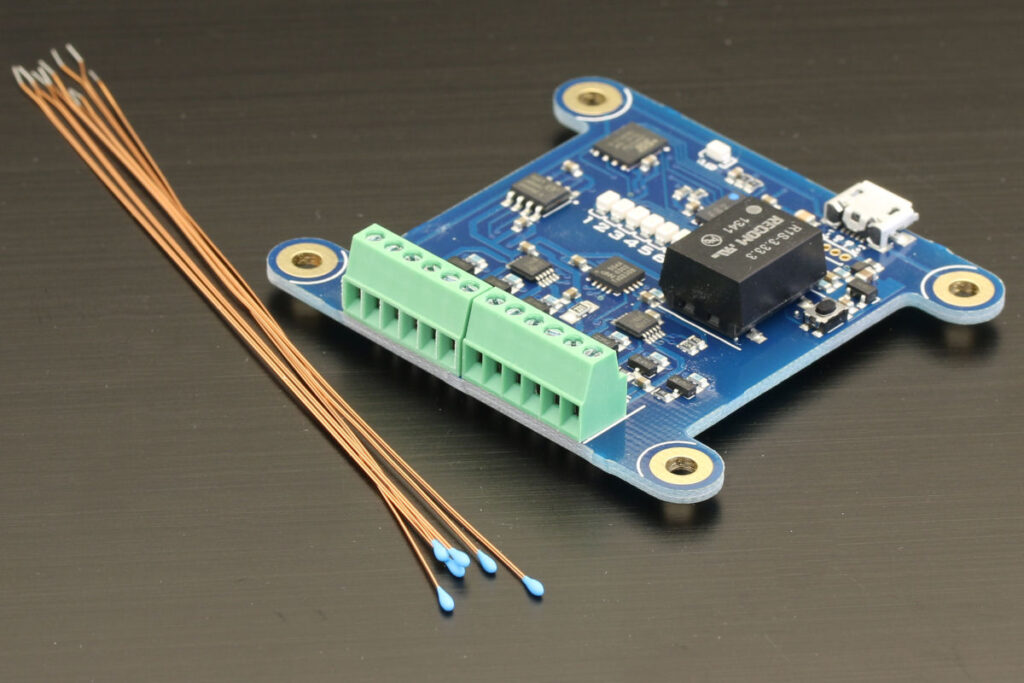 The Yocto-MaxiThermistor is a USB interface for NTC and PTC thermistors, it converts 6 thermistors into a USB interface.